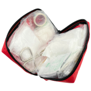 Apteczka w materiałowym opakowaniu na zamek błyskawiczny bezpiecznie zamyka cały zestaw. Apteczka jest zafoliowana.