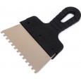 Szpachla zębata używana do pracy z klejami elastycznymi, syntetycznymi klejami o wysokiej rozlewności, cementowymi mieszaninami