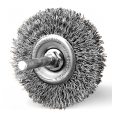 Szczotka tarczowa z trzpieniem 6 mm wykonana jest z drutu stalowego.